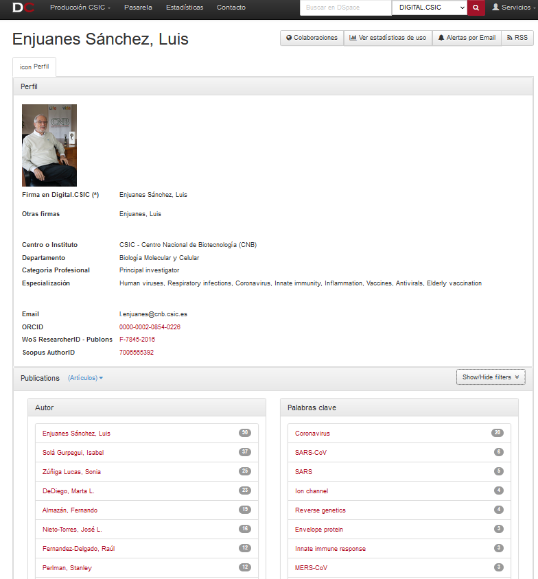 Figura 1. Perfil del investigador Luis Enjuanes en DIGITAL.CSIC.