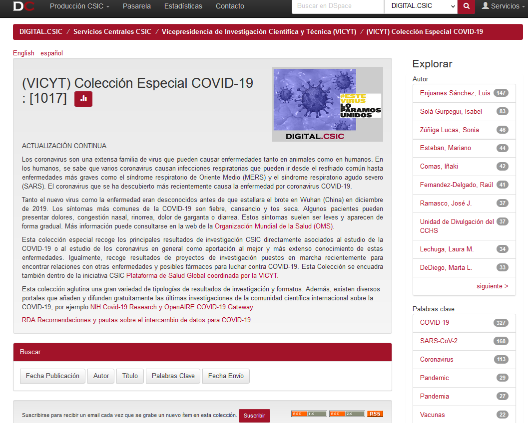 Figura 2. Colección Especial COVID-19 en DIGITAL.CSIC