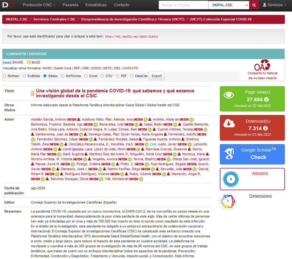 Oficina Técnica de DIGITAL.CSIC. (s.f.). Colección especial COVID-19. https://digital.csic.es/handle/10261/204074