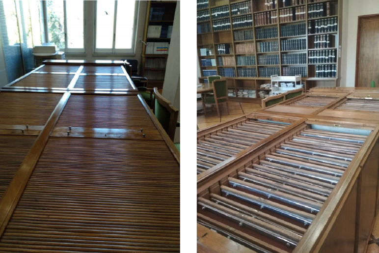 Otro recurso destacable que alberga la biblioteca es un curioso mapario que fue donado por el Instituto Geográfico y Catastral (fig. 3).