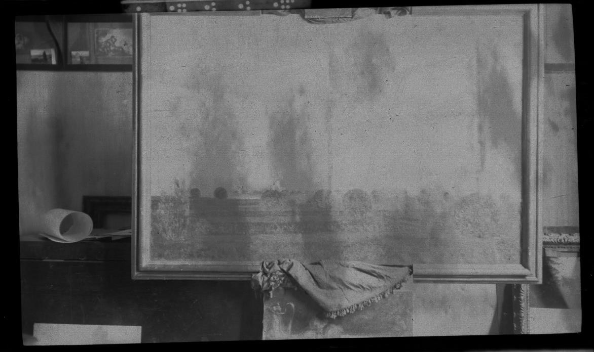 Figura 4. Negativo con el cuadro de esta vista al Jardín de los Frailes dentro del taller. Todo ilustra el proceso artístico elaborado por J. de Winthuysen