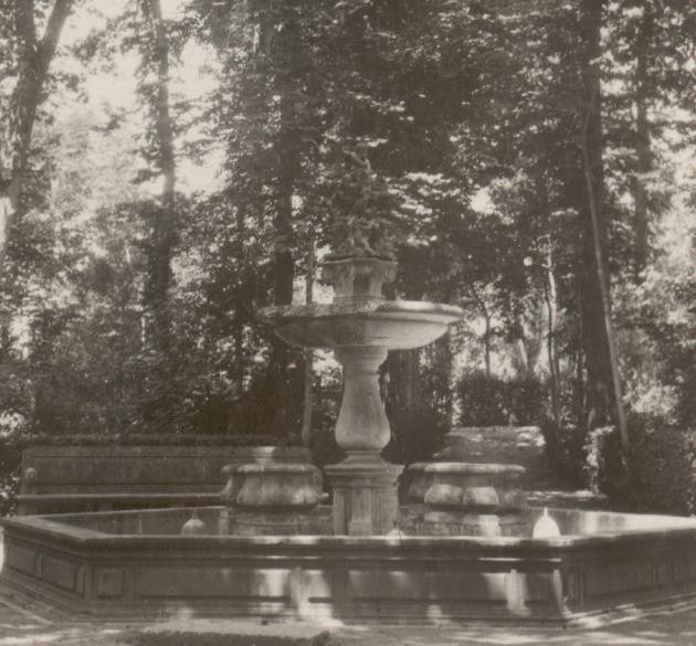 Figura 10. Vista de la fuente del Barbo, en su ubicación actual, el jardín de la Reina.