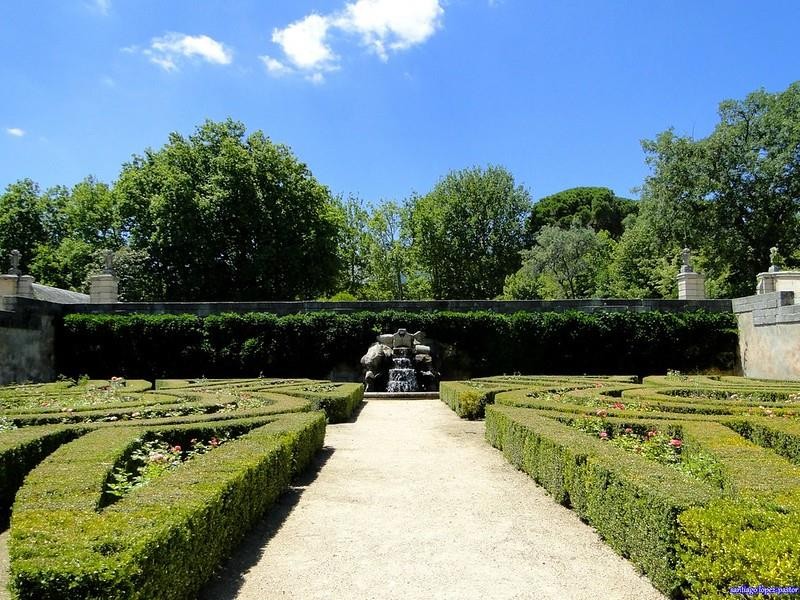 Figura 13. Fotografía del módulo central del jardín de la Casita del Príncipe. Al fondo, se puede atisbar un cúmulo de arbustos, que esconden la fuente..