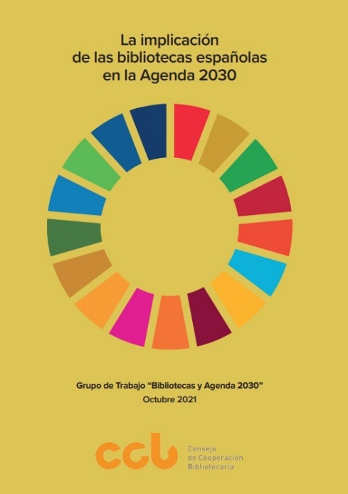 El Consejo de Cooperación Bibliotecaria (CCB), dependiente del Ministerio de Cultura y Deporte, articula las relaciones entre las administraciones públicas españolas con atribuciones sobre bibliotecas, sea cual sea su tipología (públicas, escolares, especializadas, universitarias y nacionales-regionales). Para su funcionamiento dispone de una serie de Comisiones Técnicas de Cooperación y también Grupos de Trabajo, que pueden ser estables o estratégicos; entre estos últimos se encuentra el Grupo de Trabajo “Bibliotecas y Agenda 2030”, que tiene como objetivo principal potenciar el papel de las bibliotecas como elementos fundamentales en la consecución de los objetivos de desarrollo sostenible (ODS), de acuerdo con las líneas enunciadas por la IFLA.