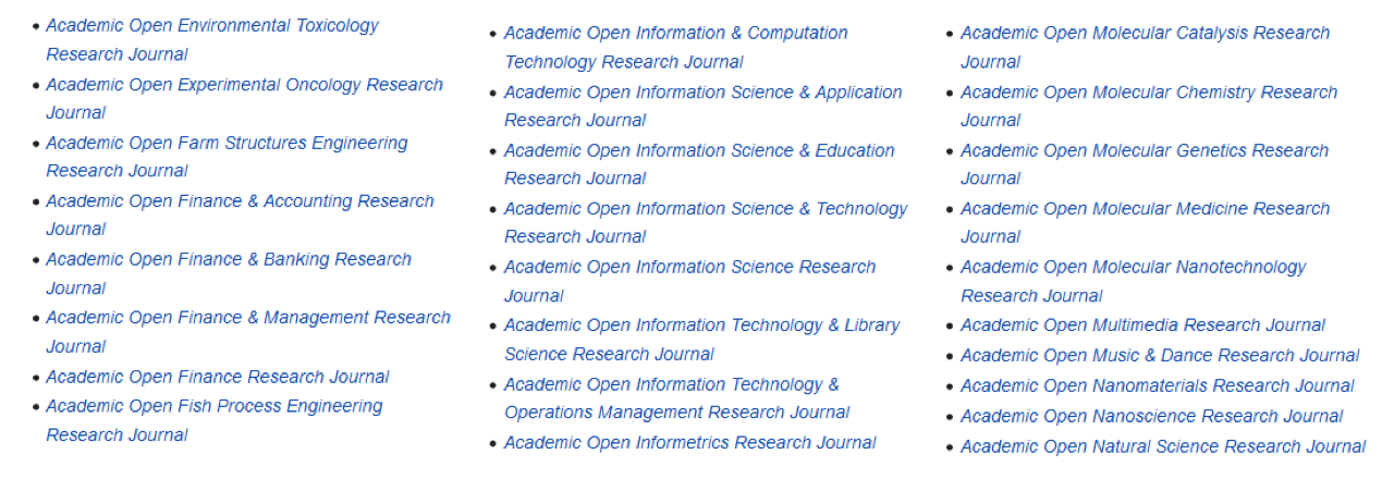 La URICI trabaja para seguir consiguiendo descuentos con los principales grupos editoriales, de manera que lo que muestra en su página de acceso es un Quién es Quién de la publicación en abierto. Lo cual nos viene bien a los investigadores, pues desde el momento en que se ha corrido la voz de que pagamos por publicar, estamos sometidos a un chorreo continuo de correos con invitaciones a mandar contribuciones a publicaciones de distinto pelaje, con grandes facilidades de evaluación y bajos costes de publicación. Lo que hace unos años eran invitaciones a ser Honorable Speaker en el tema a nuestra elección en simposios en Oriente, con todo pagado (a excepción del viaje, el alojamiento en el mismo pequeño hotel del congreso y la manutención), ahora es spam con solicitudes con nuestra Valuable Contribution a publicaciones de nombres clónicos que tienen entre cero y ningún artículos en su contenido y que se pagan con Paypal. Las imágenes en algunas de sus webs (fig. I) suelen inducir a la desconfianza, pero aun así el que alguien caiga en esta suerte de phising es una cuestión estadística.